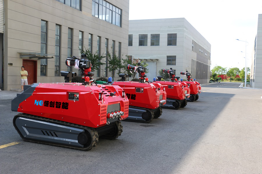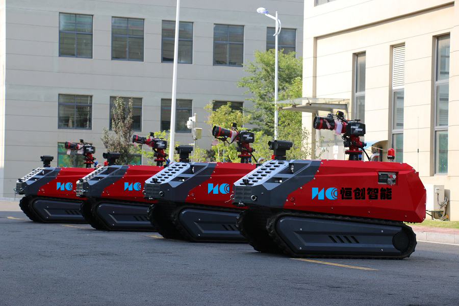 采用柴油發動機提供動力,采用ATV液壓履帶底盤,機動靈活,可原地轉向,可爬坡,越野能力強;配備的150L/s大流量進口消防炮,射程遠,可有效應對大型火災需求。消防機器人可有效的替代拖車炮、移動炮,利用自身動力將消防炮遙控至需要的位置,有效的替代消防救援人員靠近火源及危險場所進行偵察、滅火等作業,操作人員可遠距離火源以外的地方進行滅火作戰,避免不必要的傷亡。
